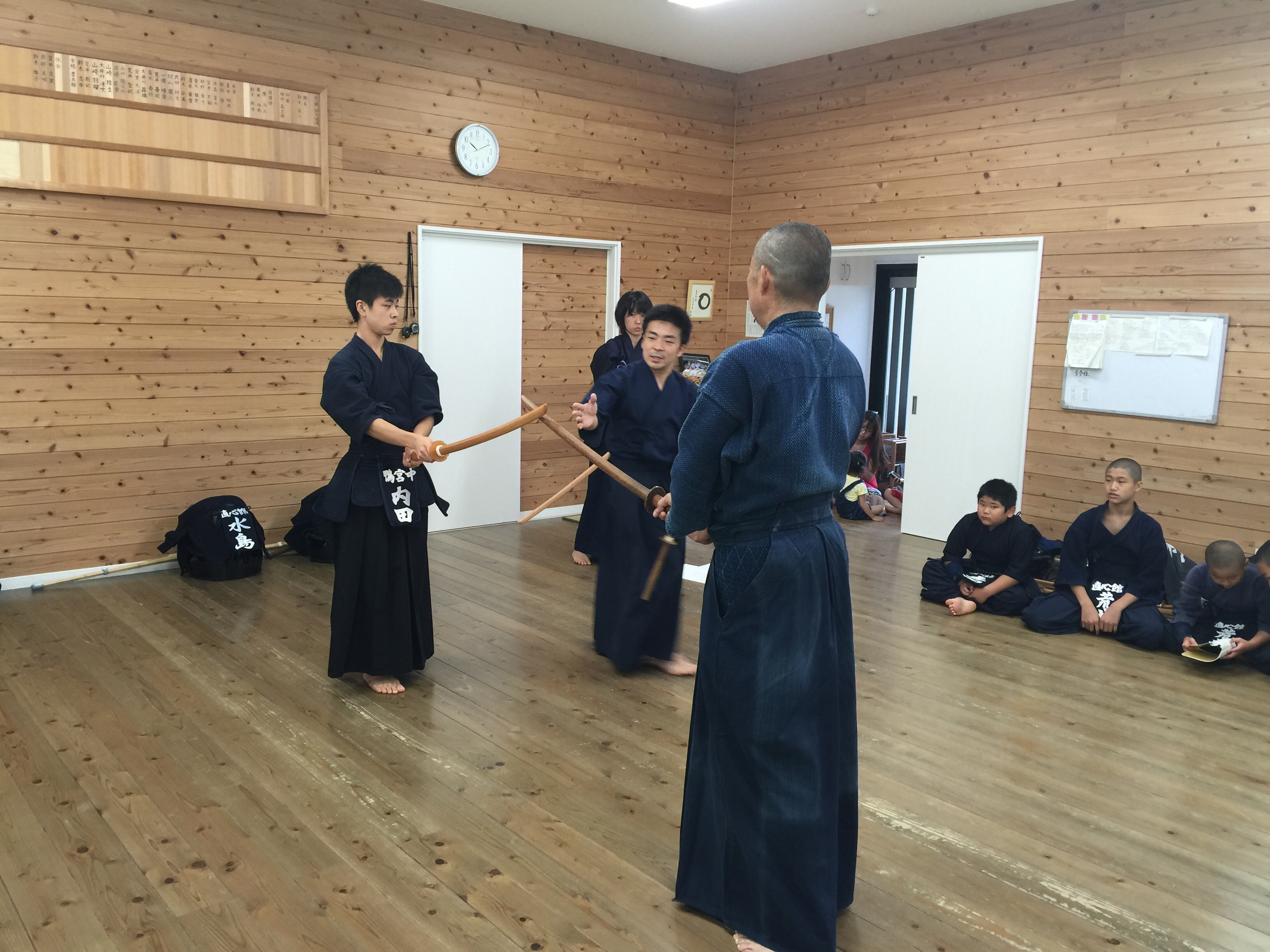 中堅指導者研修会の伝達講習が行われました ツイート 本日は、先日小田原剣道連盟の主催で行われた中堅指導者研修会の伝達講習を行いました。参加した朝野先生の指導のもと、剣道形と基本稽古を中心に学びを深めました。なぜ剣道形の稽古をすることが大切なのか、剣道形を知らない人に言葉でどのように指導するのか、足さばきについて、打ち込みと懸かり稽古の違いについてなど、詳しく教えていただきました。直心館では、これからもそれぞれが学んだことを会員に共有する機会を設けていきたいと思います。朝野先生・参加したみなさん、ありがとうございました。