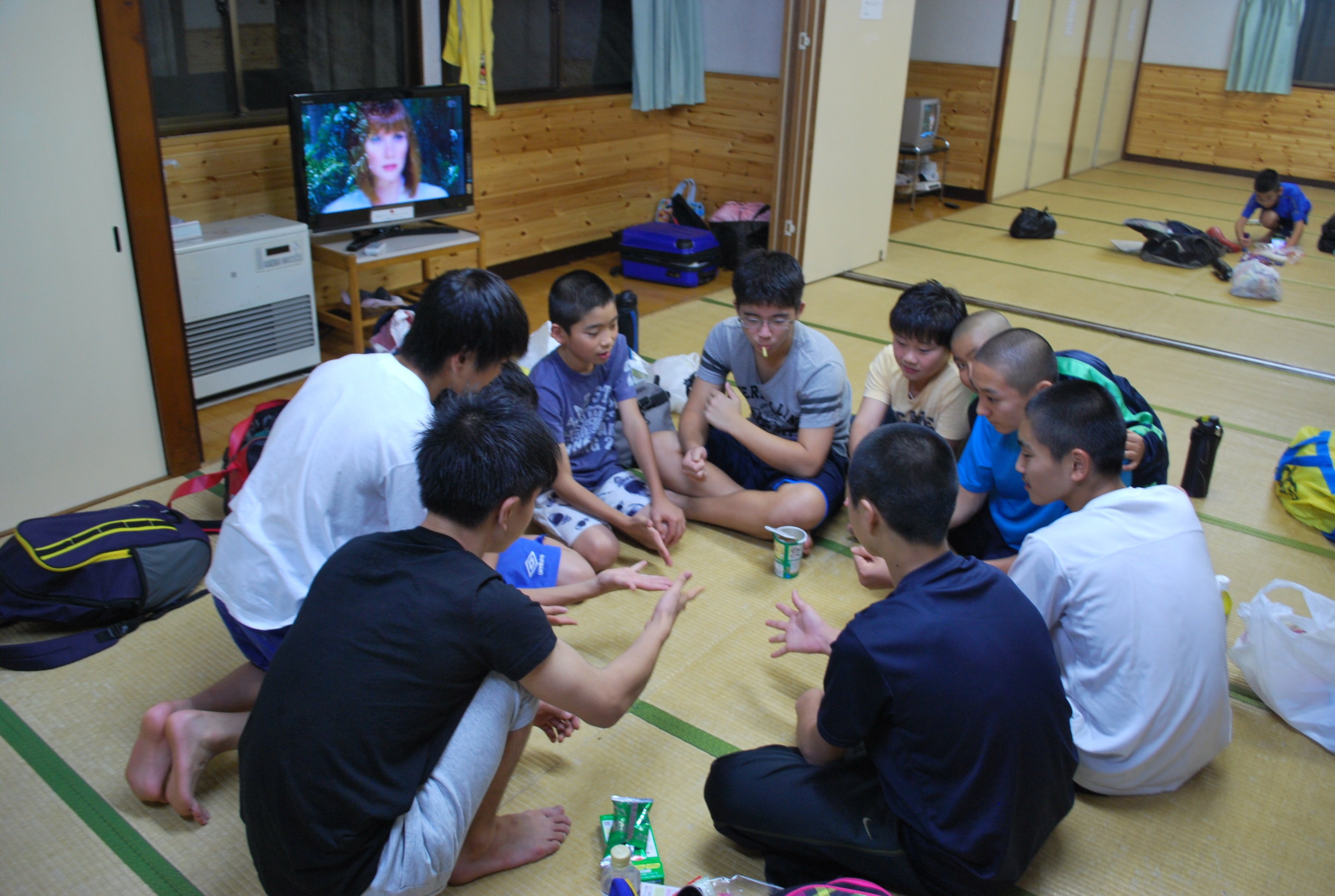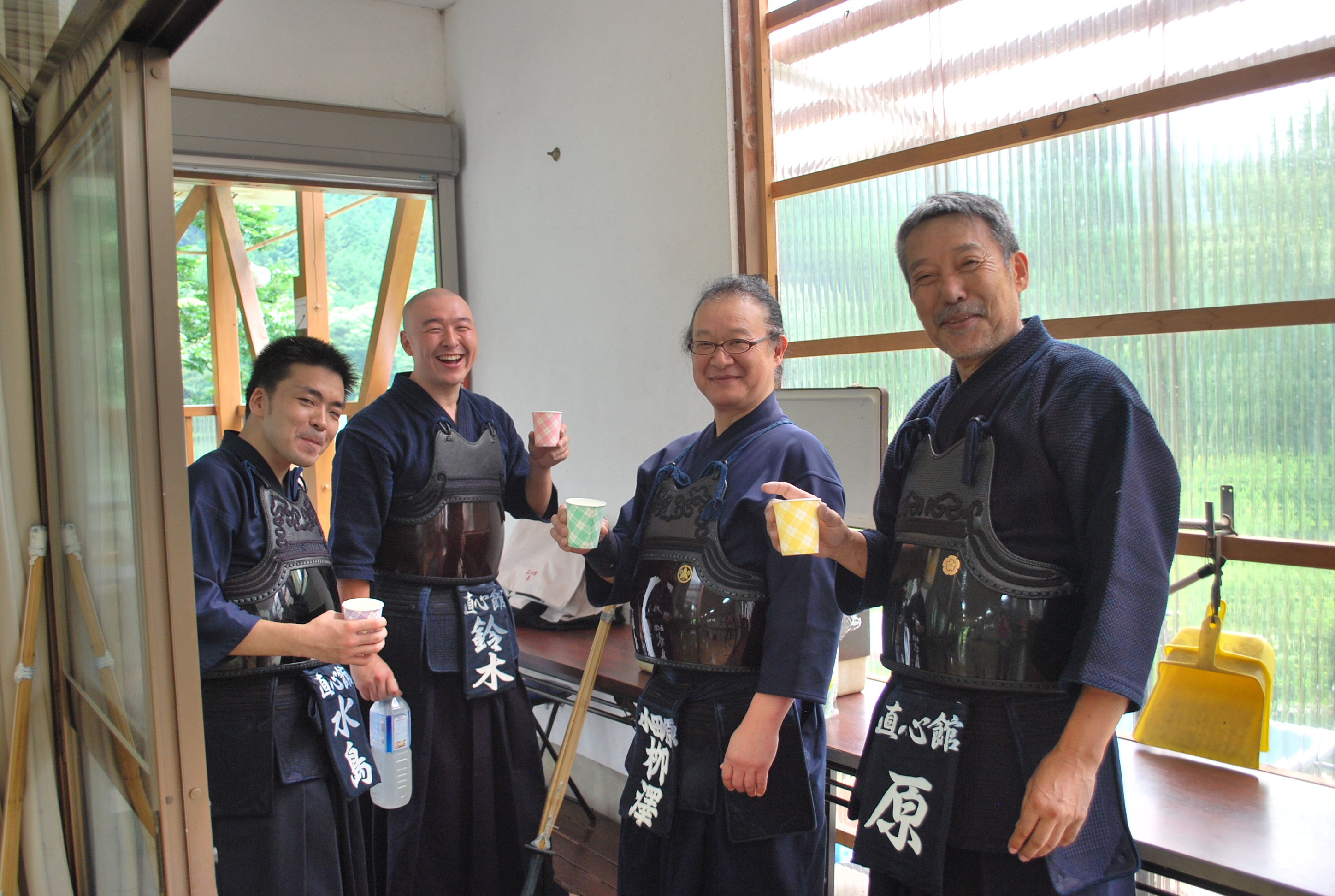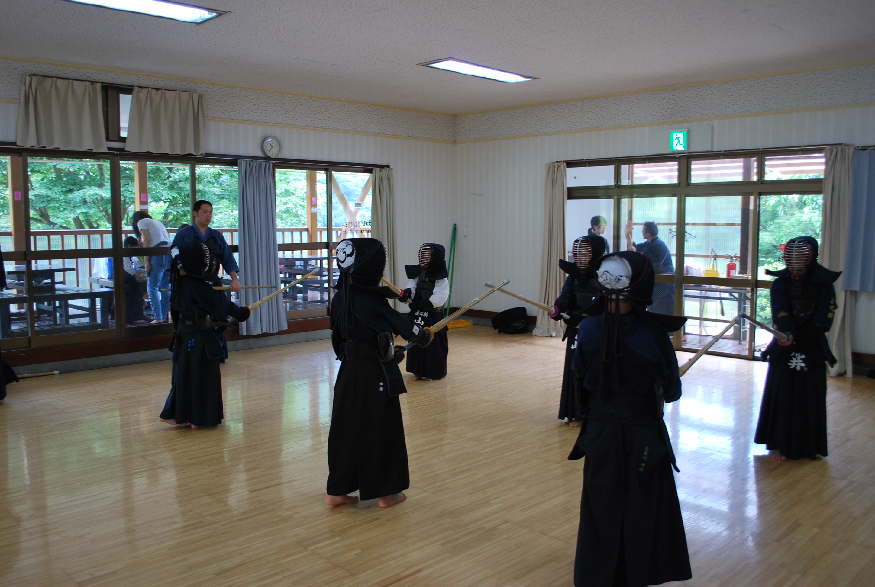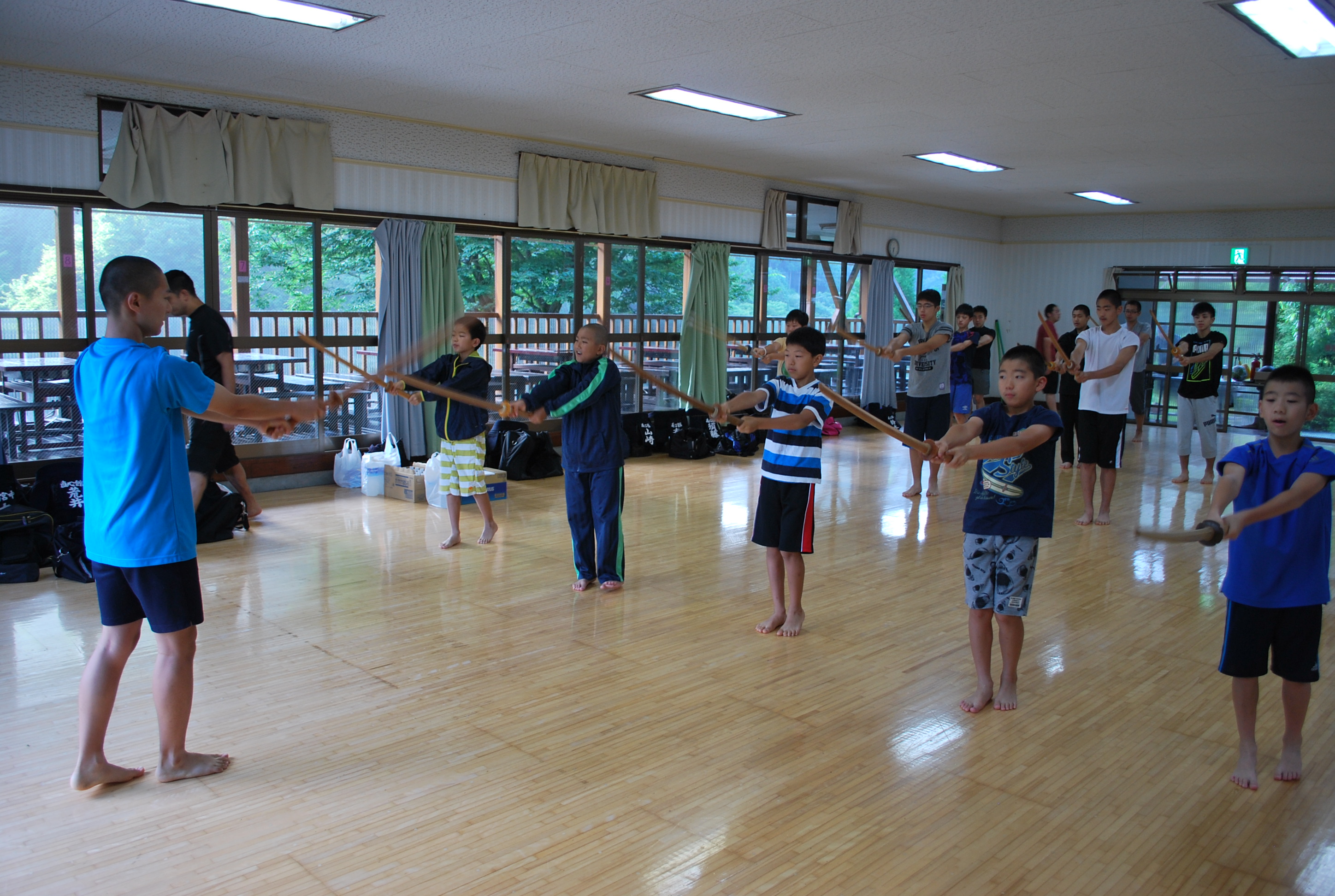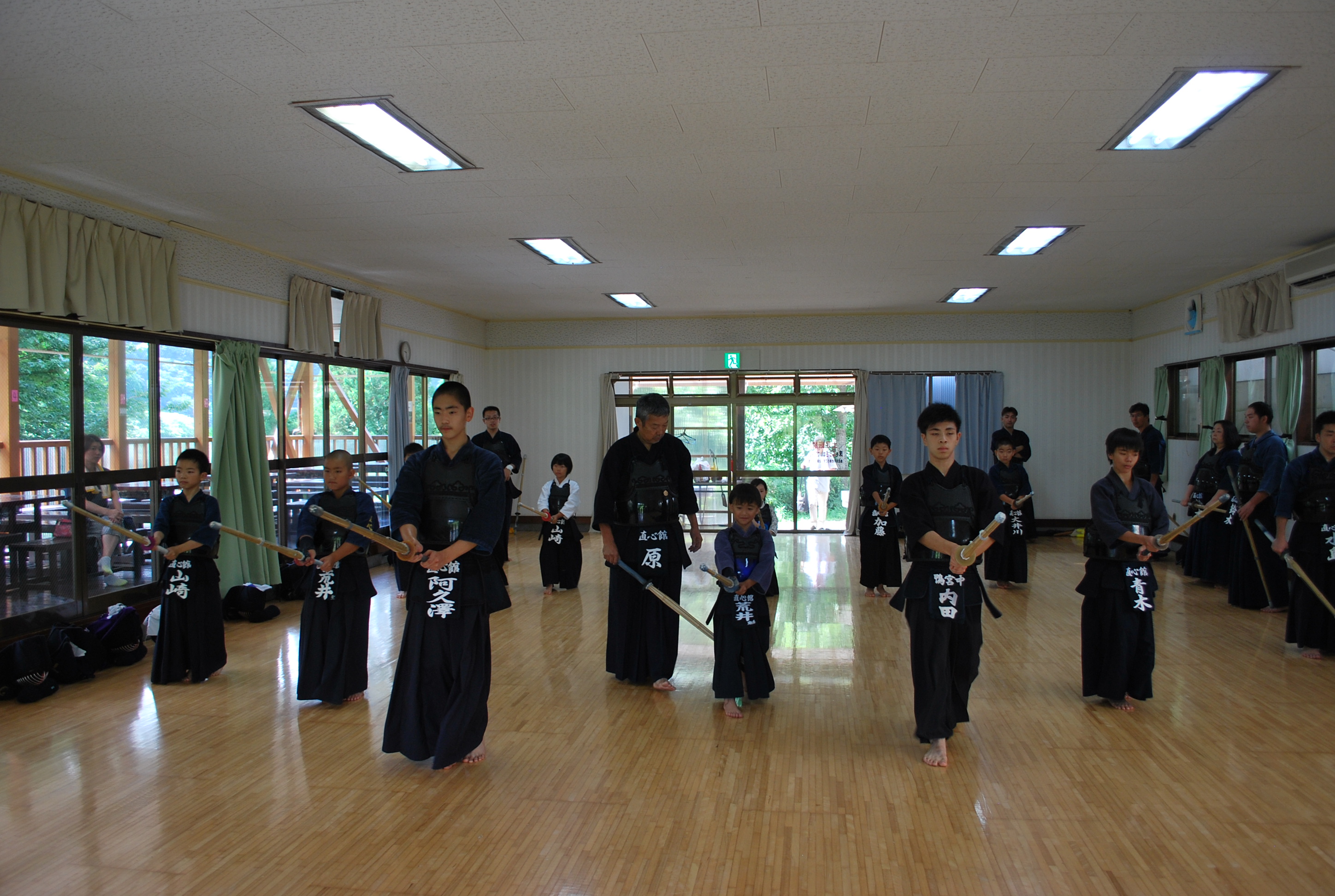 初めての夏合宿が行われました! ツイート 8月4日・5日の二日間、中川温泉で直心館初めての夏合宿を行いました。「稽古も遊びも全力で」を合言葉に、この二日間を過ごしました。切り返し・追い込み・連続の応じ技・地稽古・懸かり稽古、朝の1000本素振りと自分たちの限界に挑みました。それぞれ全力で頑張っていました。そして稽古の後は、川遊び・BBQ・花火・スイカ割りなど、思いっきり遊びました。大人も童心にかえってはしゃいでいました。みんなの絆が深まった素晴らしい夏合宿でした。素敵な仲間が集まる直心館、最高です!!