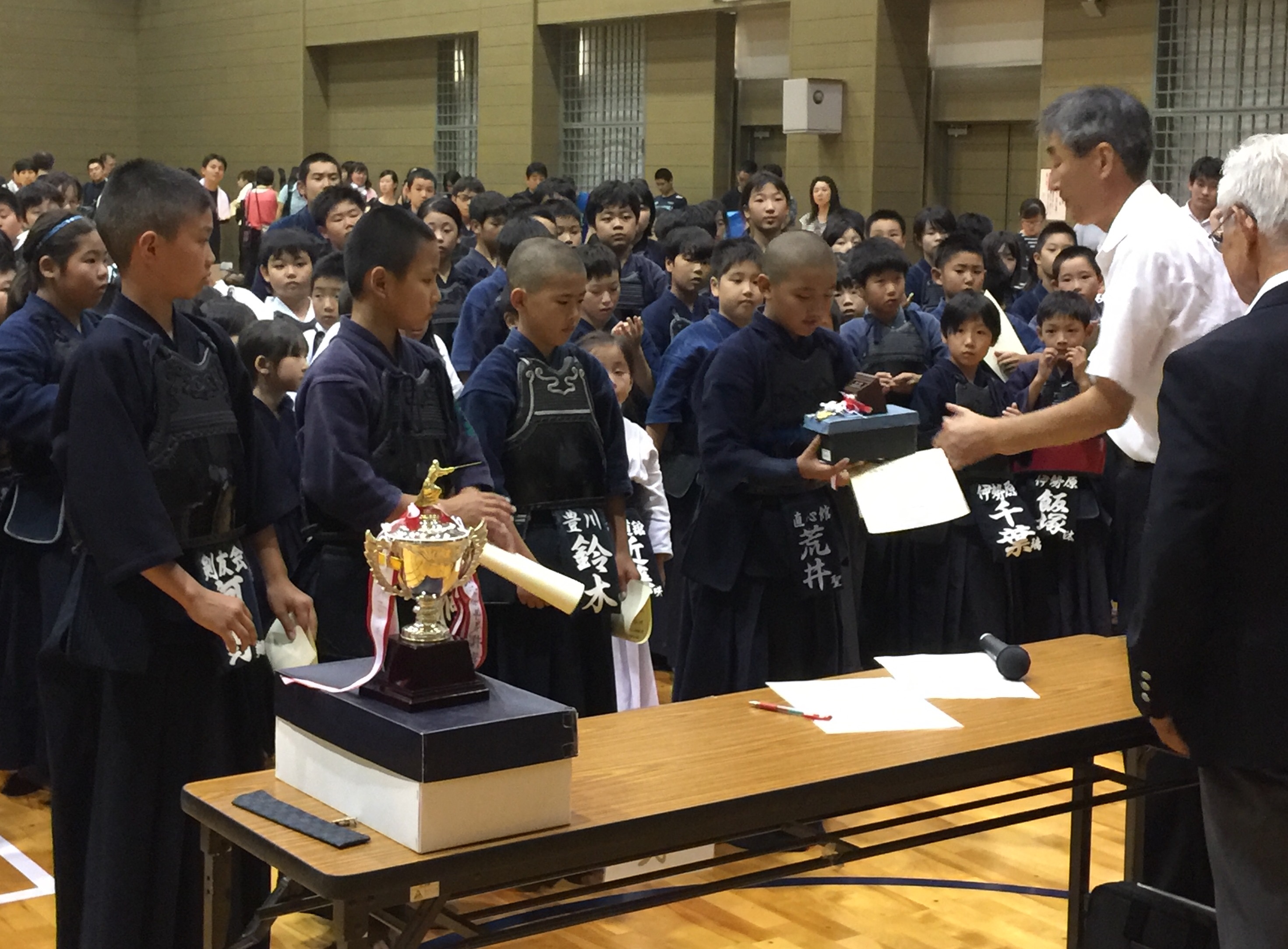 南矢名剣道錬成大会にて、個人・団体ともに大活躍! ツイート 本日、秦野市総合体育館において南矢名剣道錬成大会が行われ、高学年の部で荒井(聖)選手が優勝、低学年の部で荒井(魁)選手が優勝、磯選手が三位になりました。おめでとうございます!団体戦も、見事予選リーグを突破し、決勝トーナメント二回戦まで駒を進め、ベスト8になりました。開館五年で少しずつ勝てるようになってきました。うれしい限りです。チームとしてのまとまりを大切にし、これからもどんどん活躍できるよう指導陣一同協力して子どもたちを育てていきたいと思います!