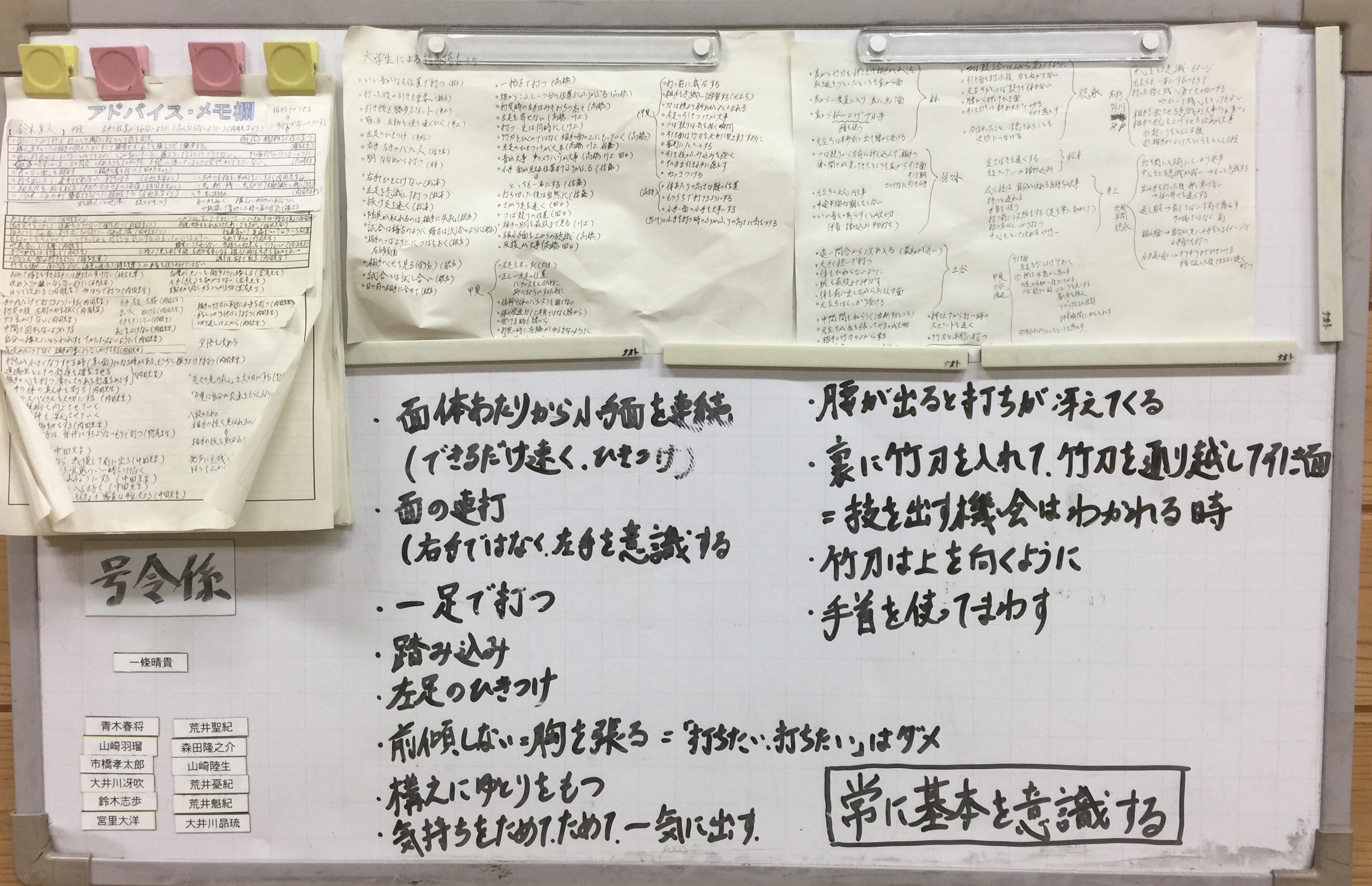 大学生による指導稽古が行われました ツイート 本日も、神奈川大学の学生による指導稽古が行われました。今日は、連打と左足の引きつけ、正しい姿勢から一足で打つ練習、鍔迫り合いの別れ際に手首を返して引き面など、基本と実戦の両方を教えていただきました。とてもよい稽古になりました。五十嵐先輩・松本先輩・土谷先輩、ありがとうございました!