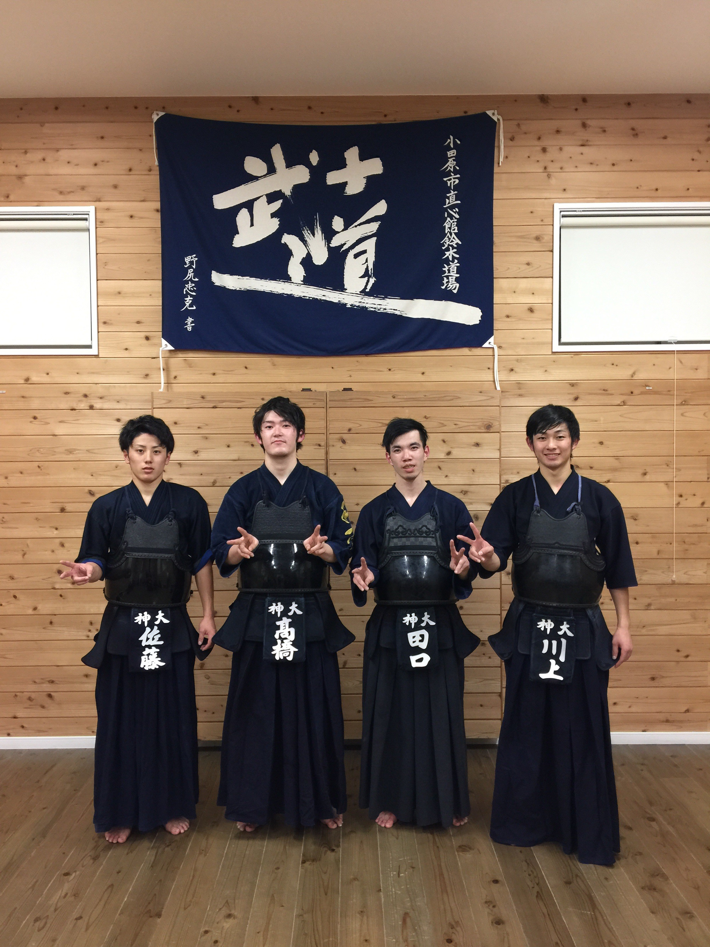 大学生による指導稽古が行われました ツイート 本日は、神奈川大学主将の高橋先輩、副主将の田口先輩、幹部の川上先輩、小田原出身の佐藤先輩が小中学生に指導稽古をしてくださいました。打ち方や技のポイントを分かりやすく教えてくださり、子どもたちもとても勉強になったようです。恒例のジグザグ懸かり稽古も大学生の元立ちで行いました。とても有意義な稽古でした。