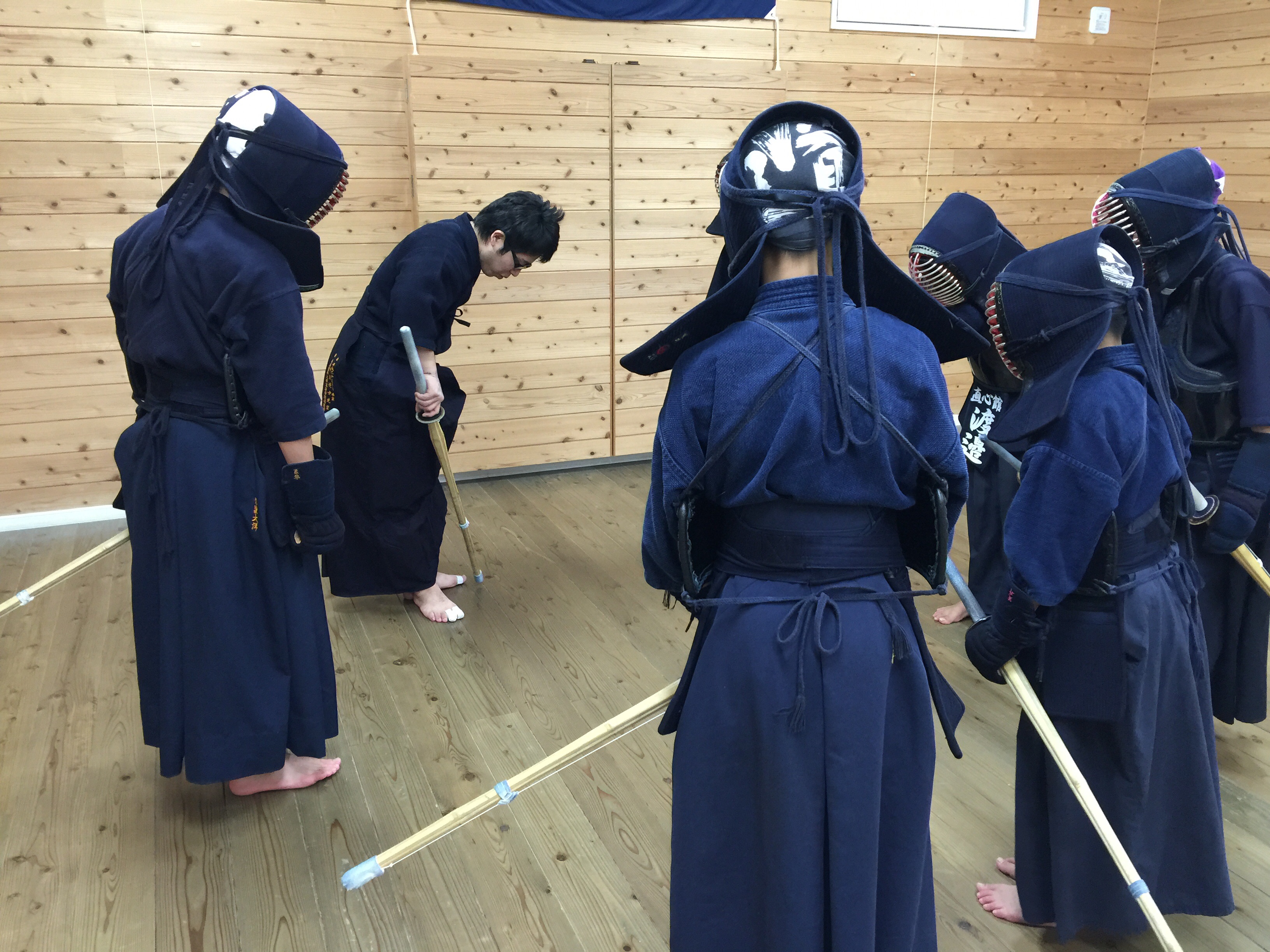 本日も大学生による指導稽古が行われました。左足の位置や向き、左手の高さなど、分かりやすく教えて頂きました。甲斐先輩、ありがとうございました!