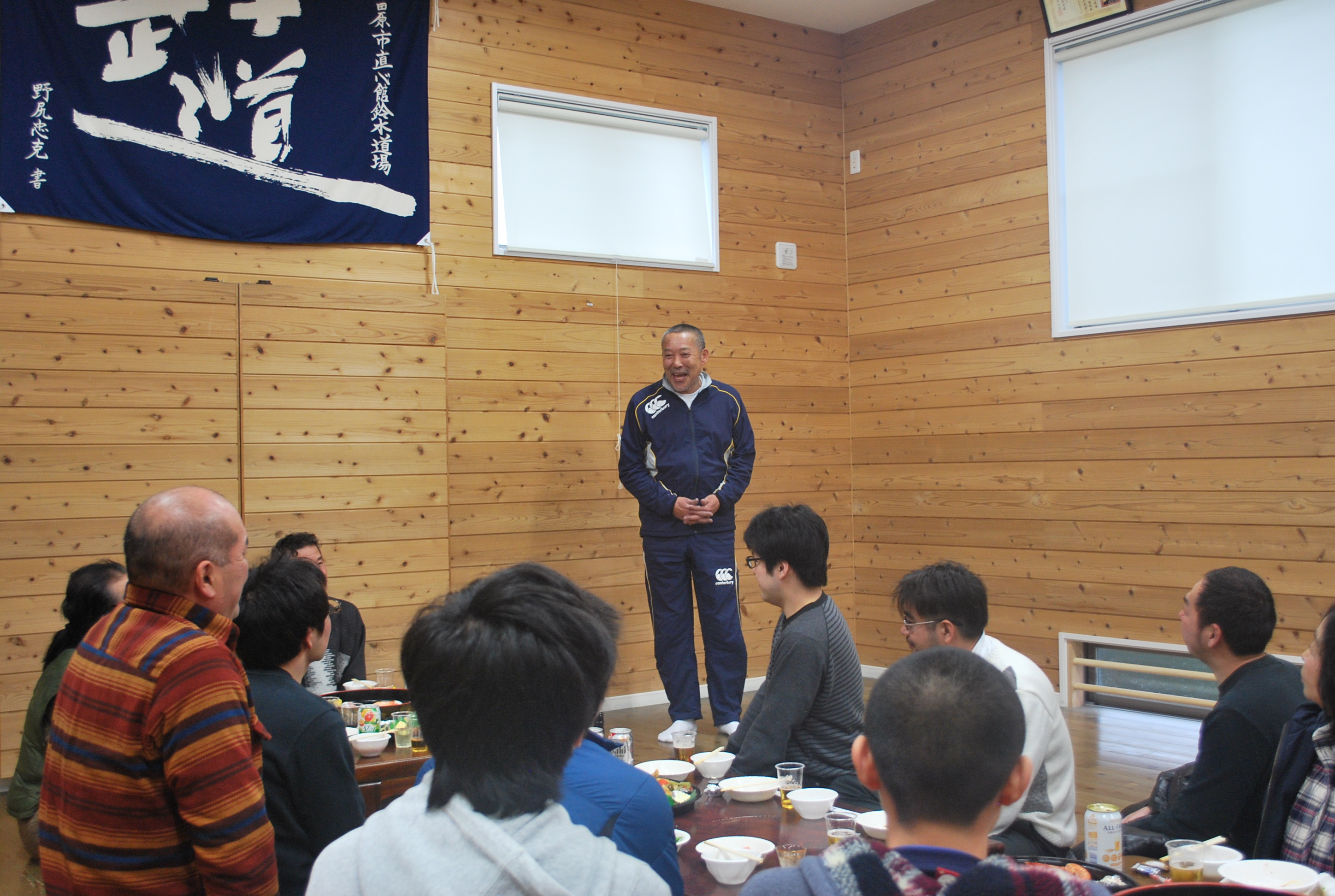 平成29年の稽古始め・新年会が行われました! ツイート 本日、平成29年の稽古始め・新年会が盛大に行われました。本日で直心館は創設4周年を迎えることができました。最初9人でスタートした道場が、今では会員数34名になりました。直心館には素晴らしい仲間が集っています。とても居心地のよい道場です。これからも、一人ひとり尊敬し合い、協力し合い、よりよい道場づくりをしていければと思います。平成29年も直心館をお願い致します。出稽古の方も大歓迎です。みなさんのお越しをお待ちしております。
