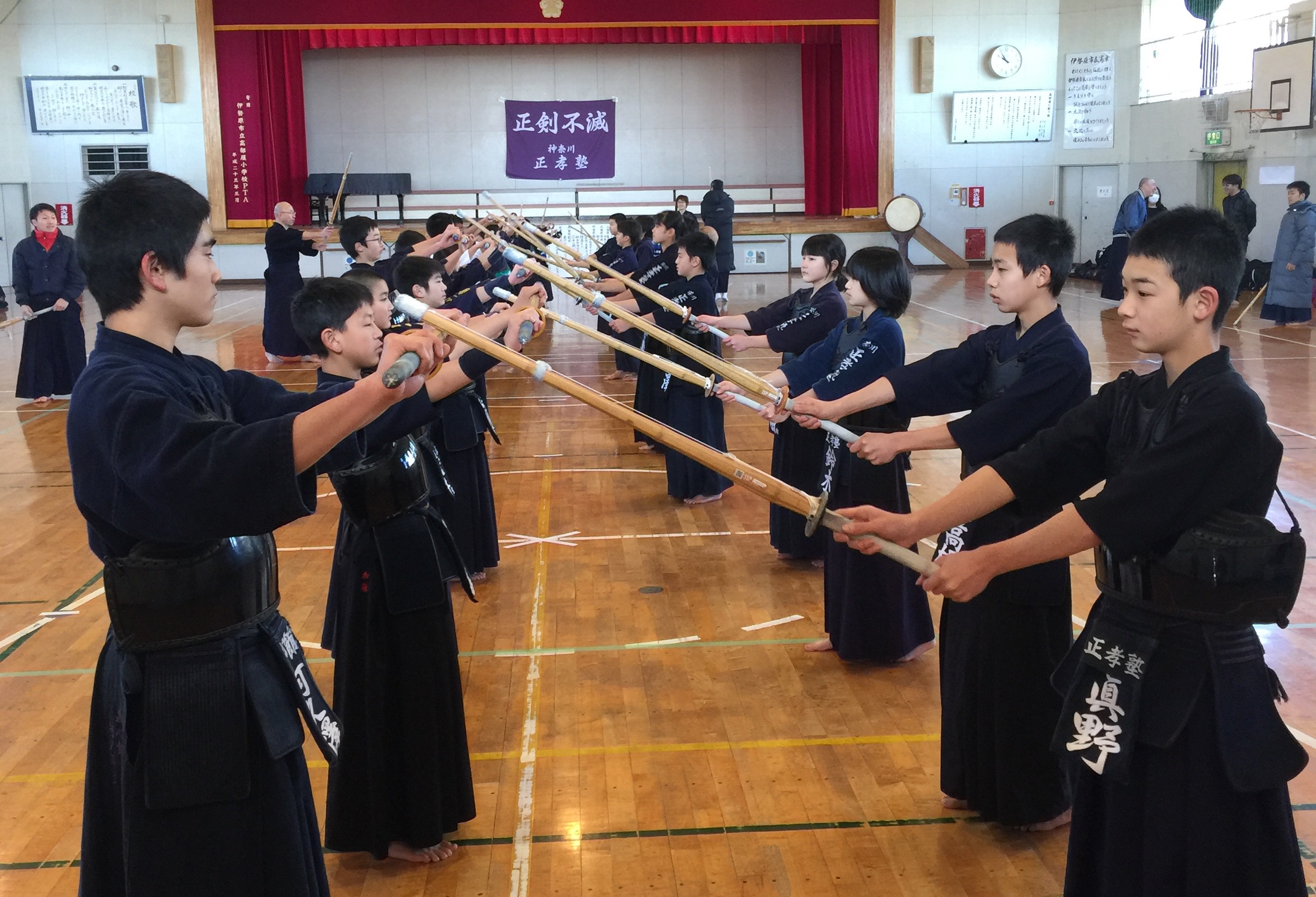 正孝塾さん、月見台剣友会さんとの交流会が行われました ツイート 本日は、伊勢原の正孝塾さんにお招き頂き、正孝塾さん・月見台剣友会さんとの交流会に参加してきました。正孝塾さんが普段行っている体幹トレーニングや基本稽古を体験させていただき、練習試合や地稽古も行い、とても有意義な一日となりました。地元で稽古を積むことも大切ですが、こうして外に出て伊勢原や横浜の剣道に触れることもとても大切です。こうして機会を設けてくださった上原先生をはじめ、正孝塾のみなさん、月見台剣友会のみなさん、本当にありがとうございました!