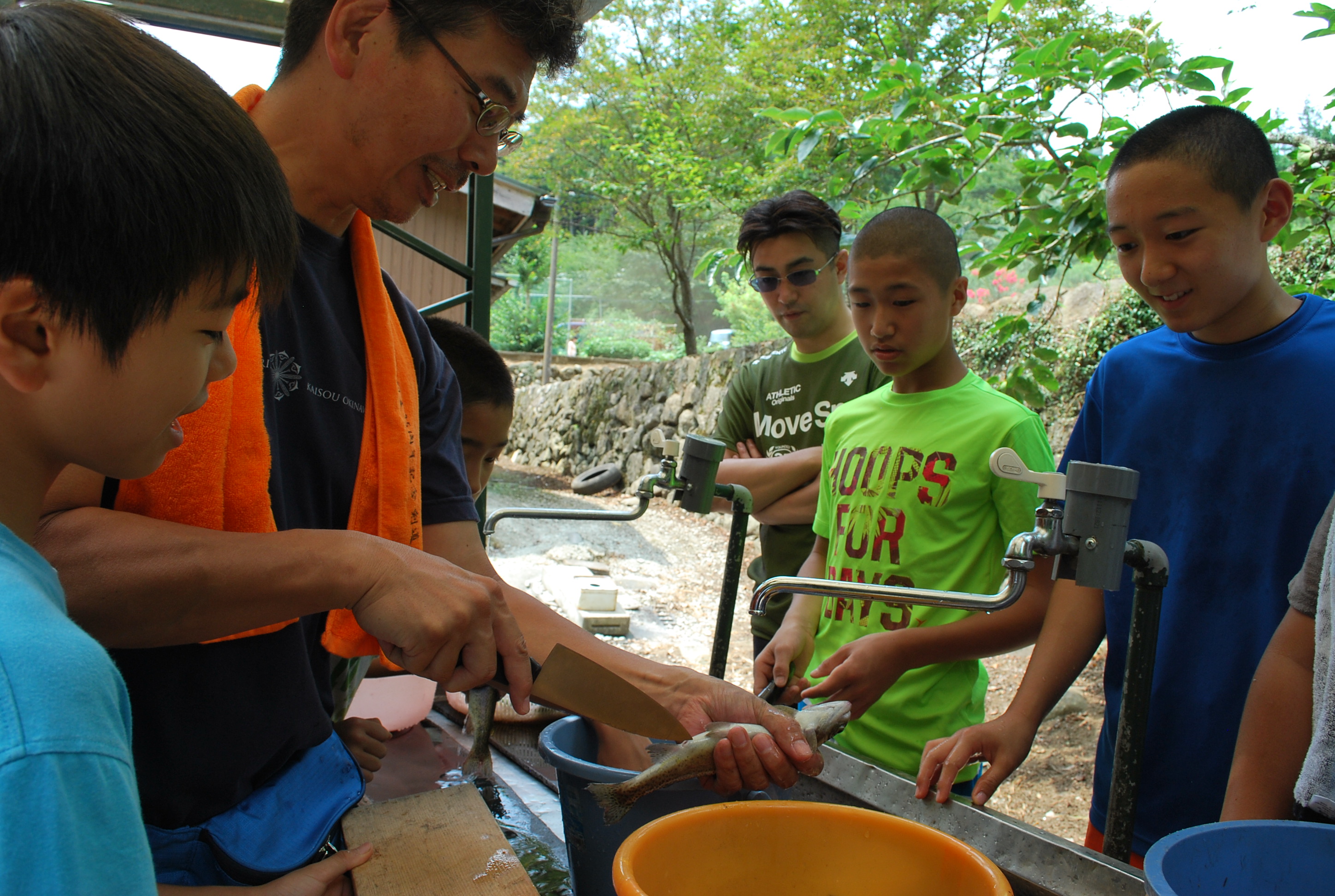 直心館恒例のBBQ大会が行われました! ツイート 8月11日の山の日に、直心館恒例のBBQ大会が行われました。今年の会場は小田原の久野にある峯自然園でした。マスのつかみ取り、BBQ、すいか割り、大人vs子どものドッジボール対決など、盛り沢山の内容でした。普段は厳しい稽古をしていますが、OFFを全力で楽しむのも直心館の良いところです。仲間がどんどん増えてきて、うれしい限りです。アットホームでみんなの居場所になる道場を目指して、これからも頑張ります!