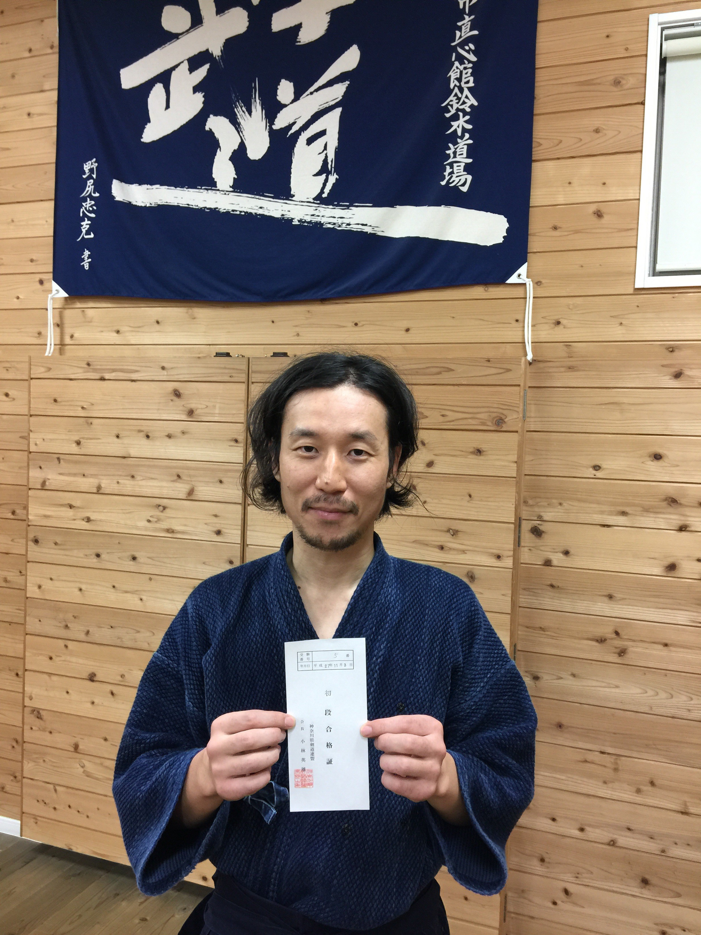 服部先生が、見事、杖道初段に合格されました!おめでとうございます。剣道だけでなく、居合道、杖道にも取り組んでいるのはすごいですね!