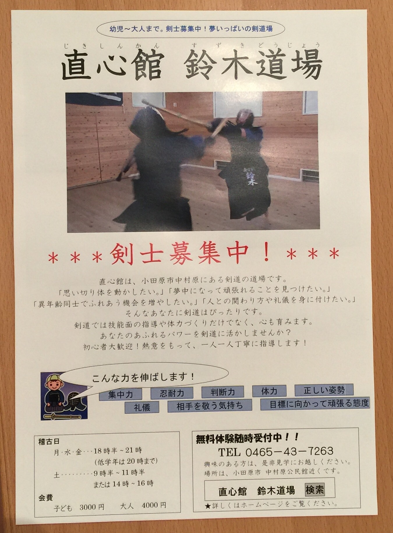 ついに道場のチラシが刷り上がってきました!新年度、これで会員がさらに増えればいいなと思います。協力してくれた会員の皆さん、ありがとうございました!