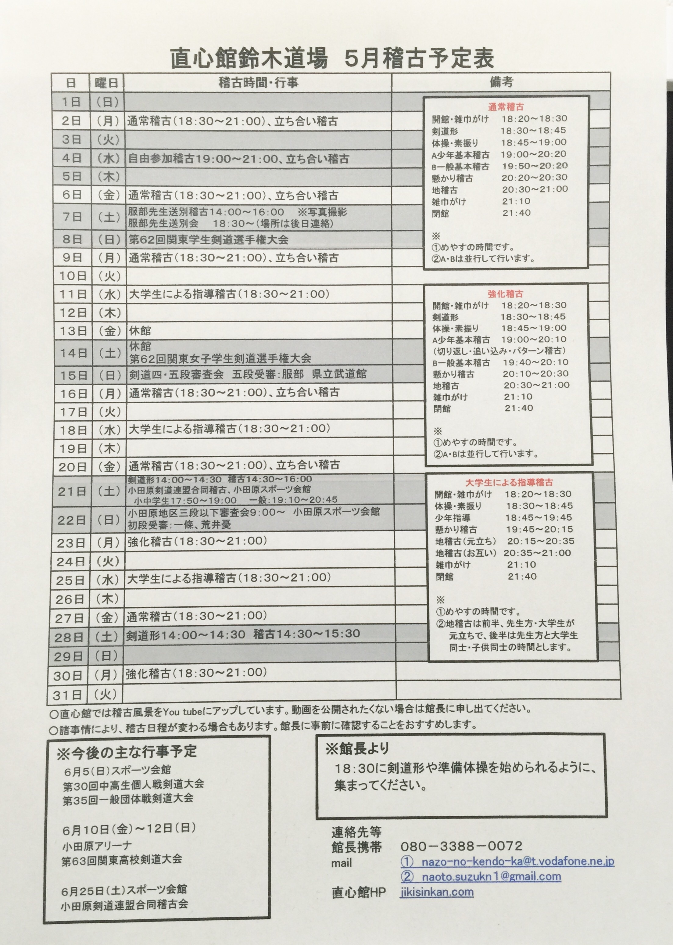 5月の稽古予定です。連休中も稽古日があります。ご確認ください。